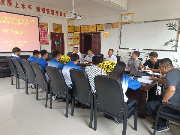 为了充分保障学生参与学校民主管理的权力,发挥学生在学校改革发展中的重要作用,保证学校后勤各项服务保障工作有序开展和高质量推进,2019年6月27日下午,国有资产与后勤管理处组织学工团委15名学生代表召开了“充分发挥学生在学校改革发展中的积极作用”学生座谈会,会议由国有资产与后勤管理处处长董善中主持。