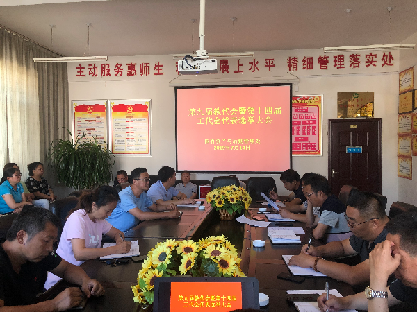 2019年7月14日上午,国有资产与后勤管理处在后勤会议室组织召开全体教职工大会,选举出席包头轻工职业技术学院第九届教代会暨第十四届工代会代表大会代表,会议由国有资产与后勤管理处处长董善中主持。