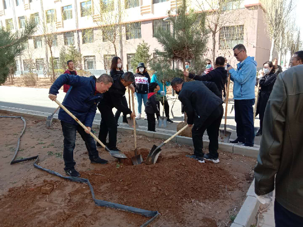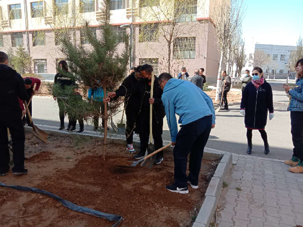 4月24日上午,国有资产与后勤管理处组织全体党员职工在A区学生公寓北侧绿化场地开展了义务植树活动,活动现场干部职工分工协作、挖坑植树、培土浇水,协助绿化公司种植了300棵油松。