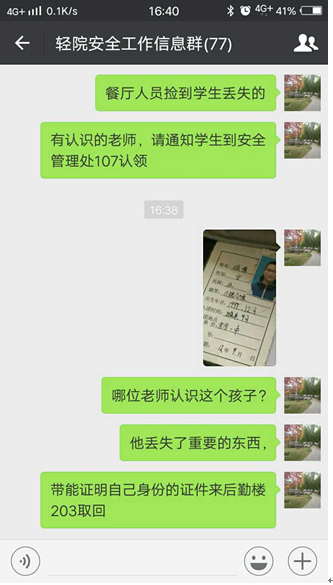 2017年12月15日上午,聚英楼餐厅负责人宋炳华在餐厅巡查时发现一台联想笔记本,在等待失主找回无果后,于15日下午交到了国资后勤处综合办,随后国资后勤处及时联系安全管理处赵军处长帮忙寻找失主。