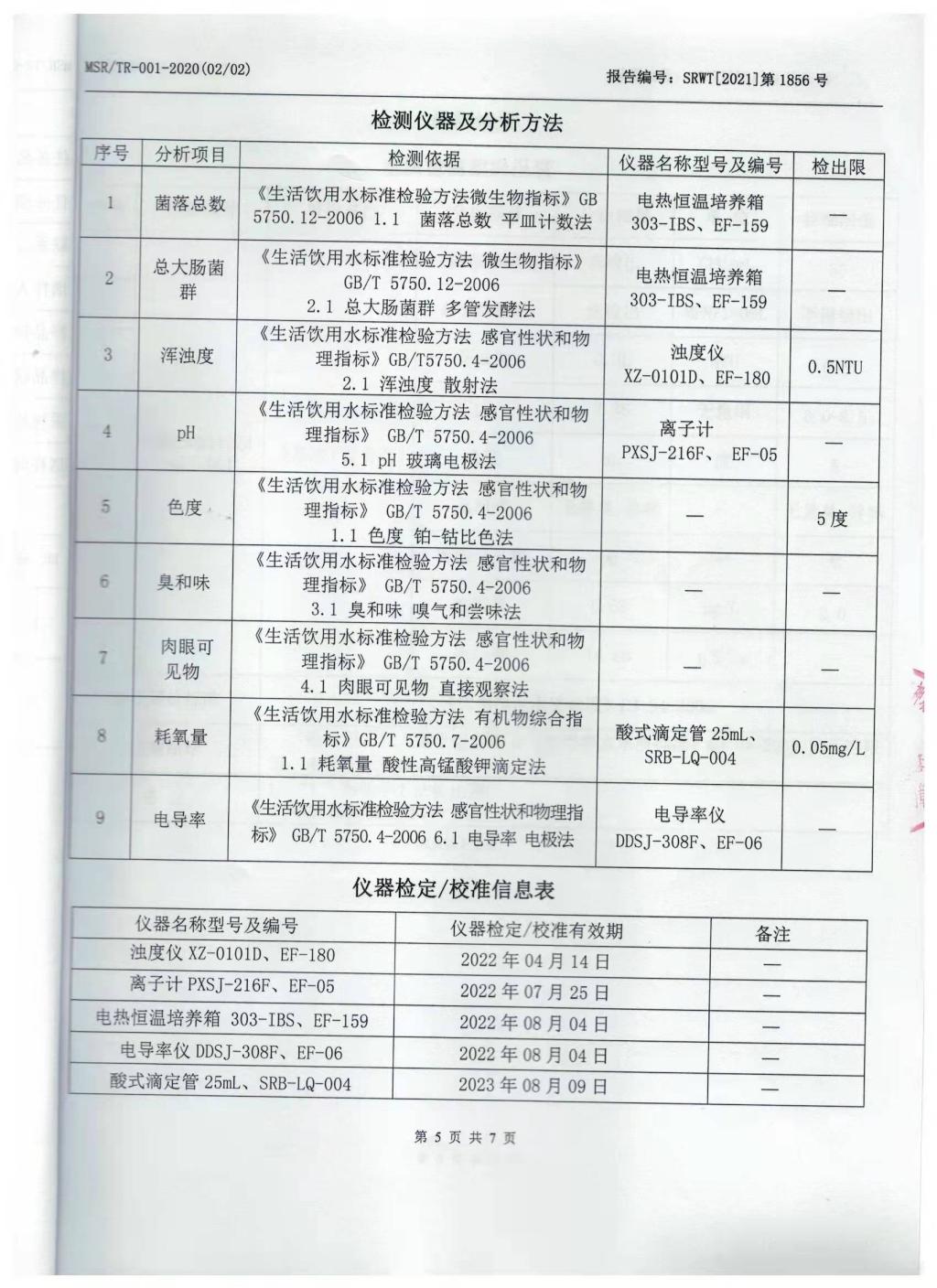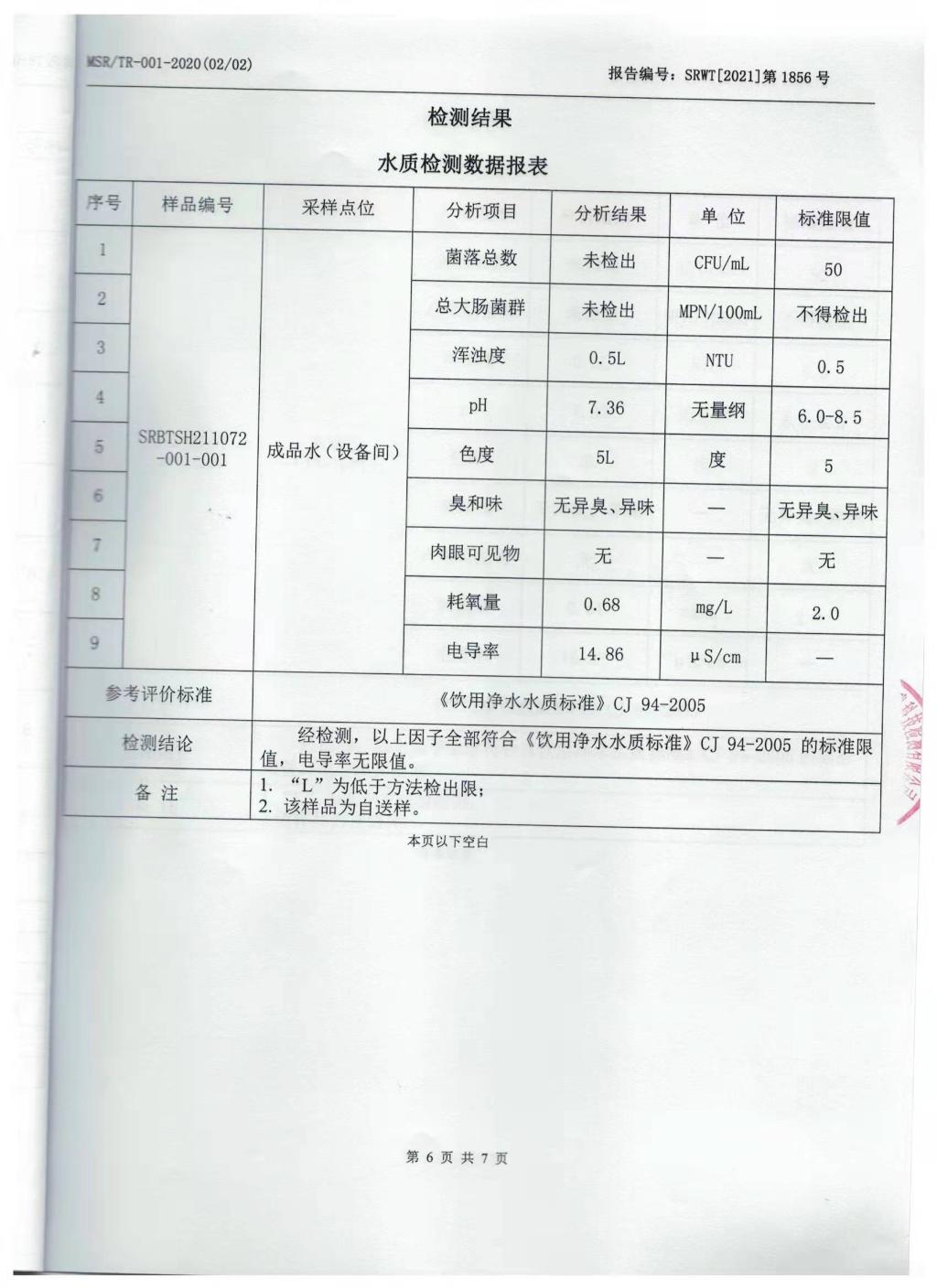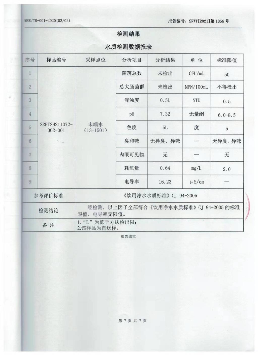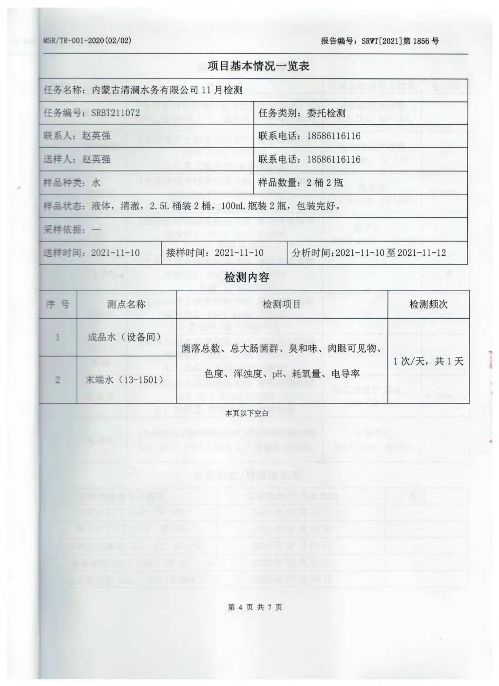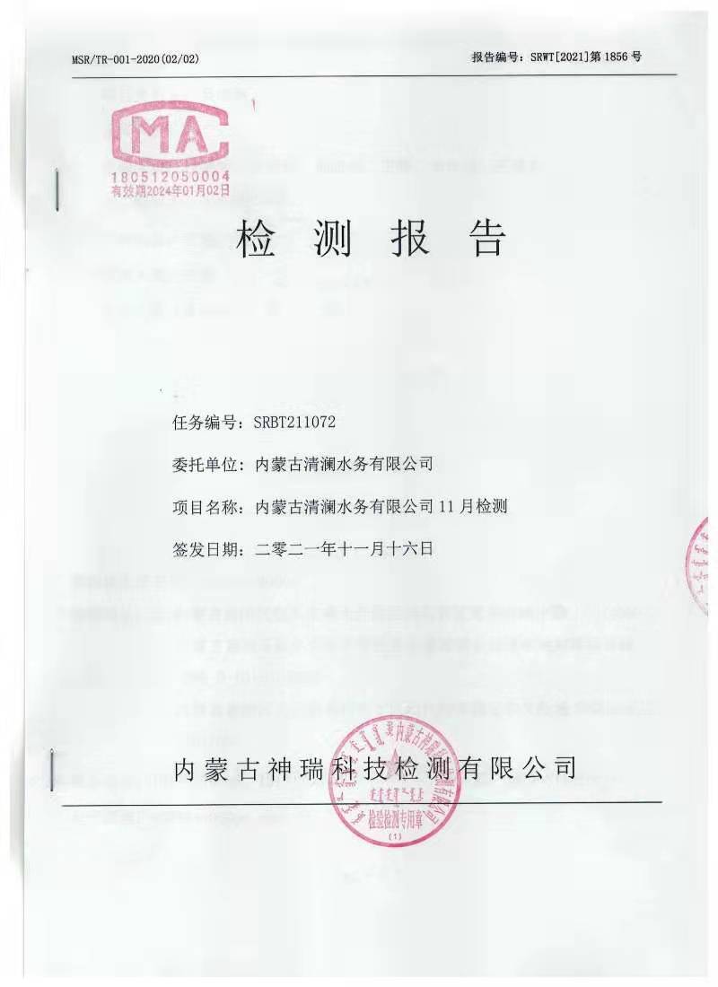 2021年11月份直饮水检测报告